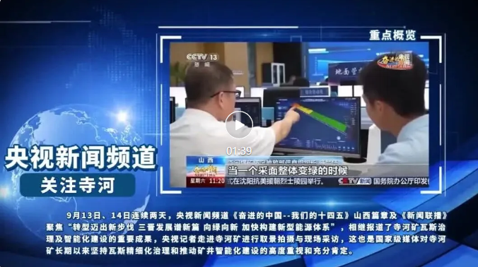 近期(9月中旬),央視新聞頻道《奮進的中國——我們的十四五》山篇章及《新聞聯播》“轉型邁出新步伐 三晉發展譜新篇 向綠向新 加快構建新型能源體系”專題中,連續報道了寺河礦在瓦斯治理與智能化建設方面的顯著成效。央視記者深入一線,實地拍攝并采訪,展現了寺河礦在瓦斯精細化治理與技術創新上的突出成果,體現了國家級媒體對能源企業轉型升級的高度關注。寺河礦瓦斯治理“黑科技”的背后,是光力科技的硬核支撐。